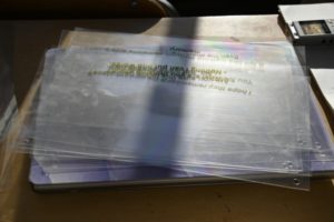 日本語、英語、ブルガリア語、オランダ語など、色々な言語が透明シートに印刷されている