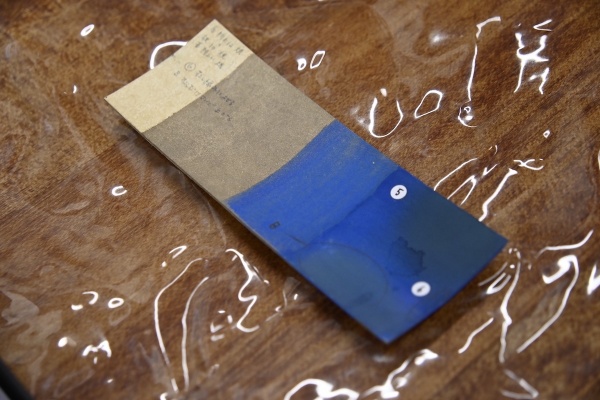 臨写の時に「色合わせカード」も作ります。どの部分にどんな色が使われていたかを記録したもので、その後の制作ではカードを頼りに作品に色を入れていきます。