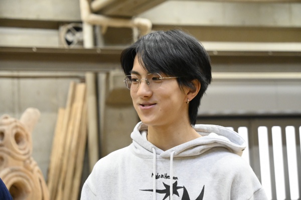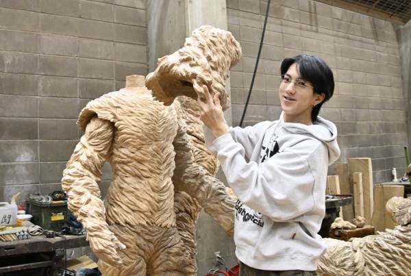 12月初日の晴れた上野・東京藝術大学彫刻棟。天井の高いアトリエから木を彫る音が響き、関楓矢さんが木の香り漂う制作現場で迎えてくれました。