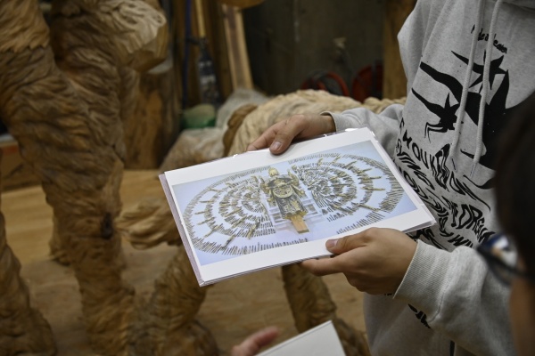千手観音の手が展開されている写真を見たのが去年学部3年生の時で、その頃から意識しました。今のプランになったのは今年の3月くらいです。それ以前はこんな姿になるとは思ってもいなかったし、自分の制作技法が木彫になるとも思っていませんでした。木彫以外の制作もやっていましたが、主題を反映する際に何が素材として最適か考えた時に木彫だと徐々に決まっていきました。