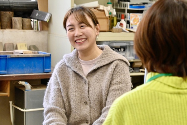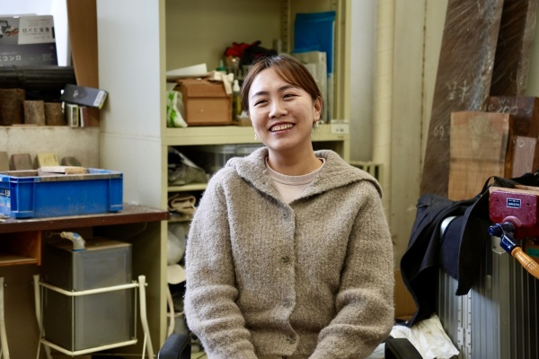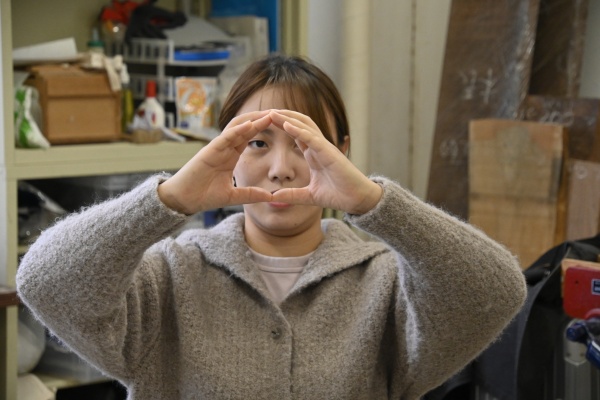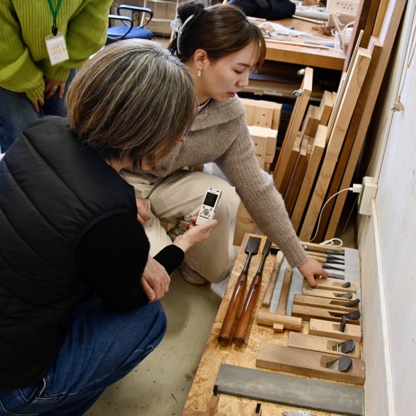 美術学部工芸科素材造形で木工芸を専攻するタオリグ・サリナさんが、茨城県取手にある取手校地で温かく迎え入れてくれました。美術学部専門教育棟2階の木工芸研究室は、鉄の重たいドアを開けると削りたての木の匂いと静かな作業場の空気が混ざり合い、時間の流れが少しゆっくりになるような感覚がありました。