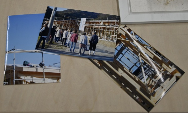 施工場所の写真と棟上げ式の様子