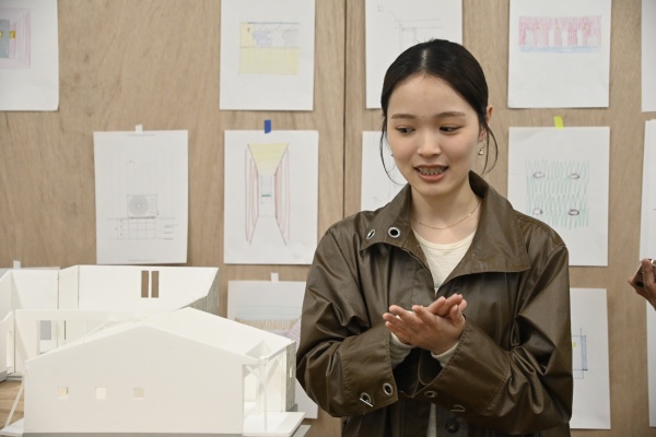 意匠設計に興味があり、藝大にはそうした設計について議論し合える仲間がたくさんいると思ったので選びました。藝大に入ったことで、建築の表現にも興味を持つようになりました。今回は実際に建つ建築を設計していますが、実施されないものであっても、建築を通して考えを示すこと自体に意味があるのではないかと思っています。建築は建物そのものだけでなく、そこに至るプロセスや考え方にもあるという面白さに、大学で気づきました。
