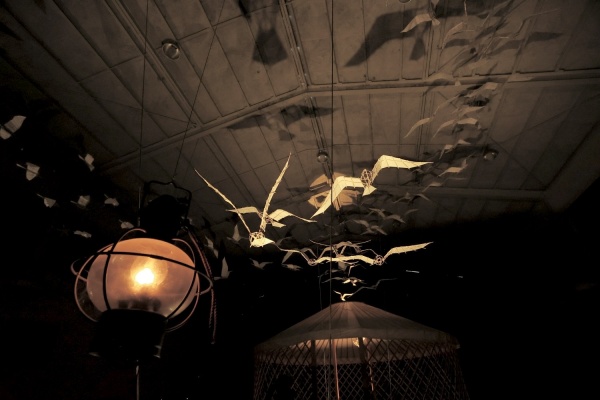 竹細工は私にとって初めてで、竹細工が好きなおじいちゃんが、道具を貸してくれたり切るところから教えてくれました。カモメをモチーフにしたのは、90代の元船乗りの方が昔、船に乗っていた時に、なかなか会えない奥さんへの想いをカモメに託した歌を作ったというエピソードに心を動かされたからです。110羽のカモメは地域の方々と一緒に作りました。平均年齢80歳ぐらいの島民のおばあちゃんたちが特に手伝ってくれたのですが、朝は畑があって午後にお手伝いに来てくれて、毎日ちょっとずつやって2ヶ月ぐらいかかりました。