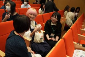 これから、活動を共にする約140名のとびラー中には、見えない・見えにくい人、聞こえない・聞こえにくい人がいます。全員が集まったこの機会に、お互いのコミュニケーションについて考え、お互いに知り合う時間を作りました。