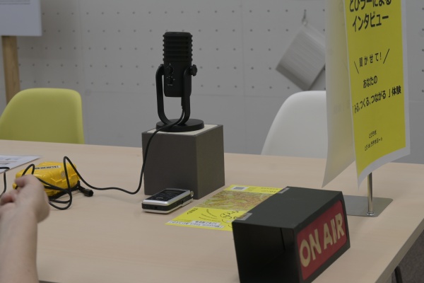 8月9日・10日の2日間で展覧会の出口付近の机に、マイクとPOPを設置したブースをつくりインタビューを実施しました。