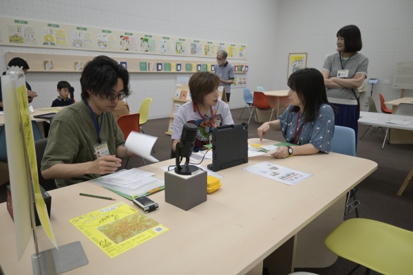 帰り際に興味を持ってくれた方や、作品や資料を鑑賞中に声がけをして、承諾してくれた方々の生の声を、ラヂオぶのブースにて収録しました。