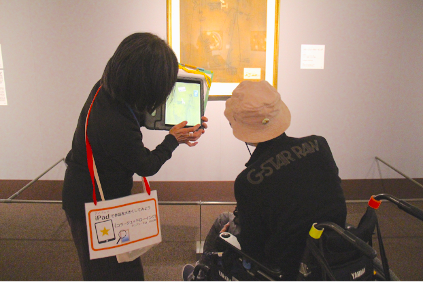 展覧会を鑑賞しに来た来館者の⽅に、作品そのものを楽しんでもらうため実施したiPadによるコミュニケーション。われわれアート・コミュニケータにとっても、来館者と直接⾔葉を交わしながら⼀緒に作品を鑑賞できることが予想以上に楽しく、喜びに満ちた嬉しい時間でした。これからも、来館者に楽しんでもらえる活動をしていきたいと思います。