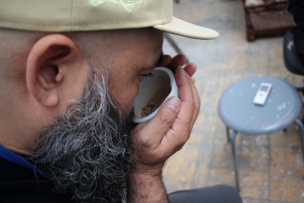 渡された乳鉢の中の香りをかぐ山本さん「この香りは?」