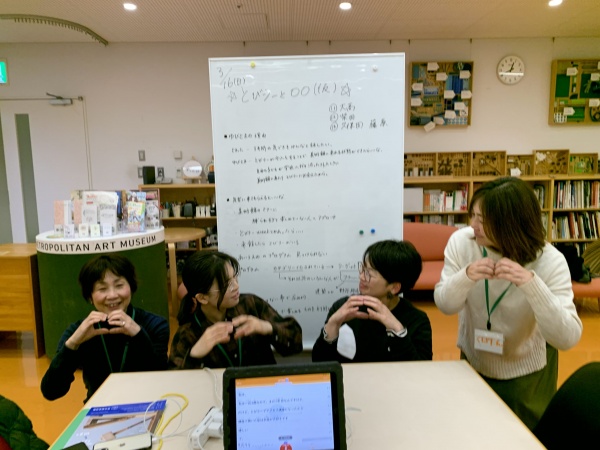 話し合いの結果、学校プログラムに参加した子どもが、次は親子で美術館に再訪して楽しむという流れを想定したプログラムを企画しました。