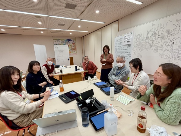鑑賞を終えて、アートスタディルームに戻り、チームごとに鑑賞内容を共有しました。参加者の方々は笑顔いっぱいで、充実した鑑賞時間だったことが伝わってきました。これまではあまり気づかなかった野外彫刻の鑑賞が実はとても楽しいものだったと、新たな発見を嬉しそうに共有してくださる声が多く聞かれました。ご夫婦で参加された方は、お互いの発想が新鮮だったようで、鑑賞後もひとしきり会話がはずんでいらっしゃいました。